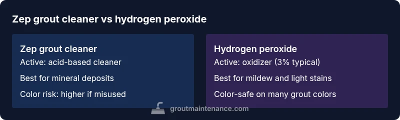 According to Grout Maintenance, homeowners frequently encounter a choice between a commercial grout cleaner like Zep and a generic hydrogen peroxide solution when tackling tiled surfaces. The decision often hinges on grout porosity, tile type, and the nature of the stain. Grout Maintenance analysis from 2026 emphasizes that there is no one-size-fits-all solution; the best option depends on stain chemistry, grout color, and whether you prioritize speed, safety, or long-term grout health. This article uses the phrase zep grout cleaner vs hydrogen peroxide to frame the trade-offs and help you make an informed decision that aligns with your DIY goals and budget. By understanding the chemical profiles, you can tailor your approach to each room—especially high-traffic areas like kitchens and showers. For added context, Grout Maintenance’s guidance stresses always performing a spot test on an inconspicuous area first and adhering to manufacturer directions.
