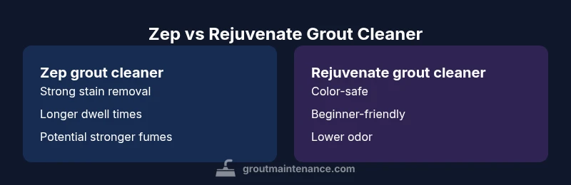When evaluating two popular grout cleaners, it helps to frame the decision around stain severity, grout type, and maintenance goals. The phrase zep vs rejuvenate grout cleaner captures the core question many homeowners ask when starting a tile cleanup project. According to Grout Maintenance, the practical difference often comes down to active chemistry and dwell time: Zep typically deploys stronger oxidizers or solvents designed to break stubborn mineral-based stains, while Rejuvenate emphasizes color-safe formulations and user-friendly application. This overview sets the scene for a deeper dive into how each product performs in real-world scenarios, with emphasis on safety, compatibility with common tile materials, and long-term maintenance considerations for busy households in 2026.