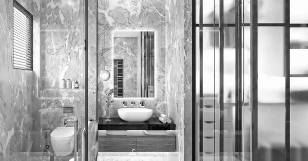 - With pale gray or beige tiles to maintain a calm, monochrome palette