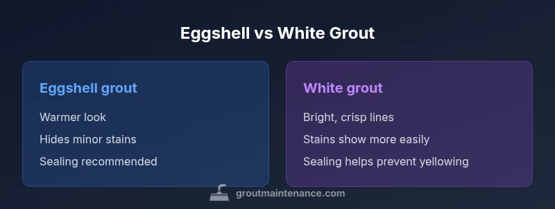 Color and tone are the first cues that set the mood of a room. When you compare mapei eggshell grout vs white, the eggshell shade tends to read warmer and softer, while white provides a stark, clean backdrop. According to Grout Maintenance, tile color and lighting interact with grout shade to shift perceived color; sampling on a small area helps prevent surprises. The Grout Maintenance Team notes that choosing the right shade depends on the tile pattern, room lighting, and the overall mood you want to achieve. In practice, most kitchens and bathrooms benefit from testing samples against actual tiles before committing. For many homeowners, the decision comes down to whether you want warmth and disguise or brightness and crisp lines.