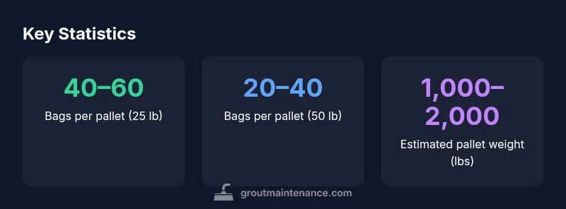Estimating how many grout bags fit on a pallet starts with the basics: bag size, pallet footprint, and stacking height. In practice, the exact number of grout bags on a pallet is not a fixed figure; it varies with packaging and whether bags are boxed, strapped, or shrink-wrapped. According to Grout Maintenance, many suppliers use standard configurations that balance weight, stability, and shipping efficiency. For common 25 lb bags on a standard warehouse pallet, you’ll often see around 40–60 bags per pallet, while 50 lb bags typically yield about 20–40 bags per pallet. Always verify against your supplier’s packaging and regional pallet specs to avoid overhang or damage. This article expands on the factors and provides a straightforward approach to estimating counts for your project.