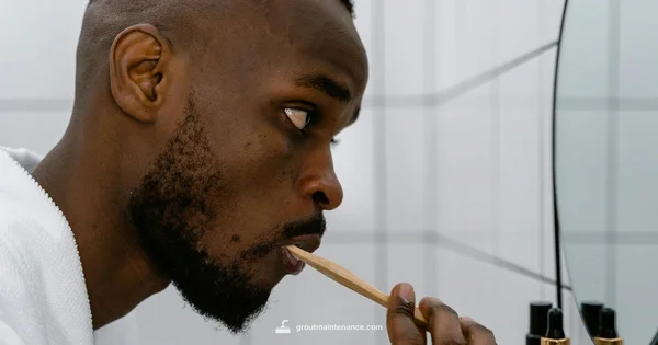 Scrub along the grout with a stiff brush and then an old toothbrush for corners. Use short, crisp motions to break the biofilm without scratching tiles.