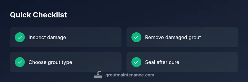 Before starting, identify the best grout option for your area: cement-based, polymer-modified, or epoxy grout. Confirm the substrate is dry and sound, and remove all crumbling grout with a grout saw. Vacuum and wipe substrates clean to ensure the new grout can bond properly. Reinstall with consistent joint width and compact grout firmly into the joints, then wipe excess material from tile faces with a damp sponge. Allow full cure time per product guidelines and seal only after grout has cured. If unsure, consult a professional to avoid damaging tiles.