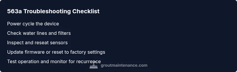 563a is a device fault code that typically points to a problem within the grout-care hardware—such as water flow, sensors, or power—rather than the grout itself. Because codes differ by brand, always consult the manual for your specific model and use a systematic troubleshooting approach.