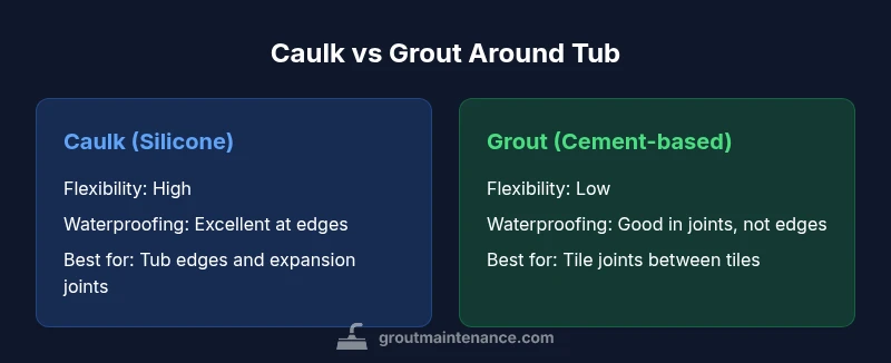When you tackle bathroom maintenance or a remodel, the question often comes down to one phrase: grout or caulk around tub. This choice isn’t about a single material being universally “better.” It hinges on movement, moisture exposure, and how you intend to clean and maintain the area. According to Grout Maintenance, most homeowners benefit from treating tub edges with a flexible sealant while reserving grout for the tile joints that need rigidity. The goal is to create a moisture barrier that won’t crack or peel under daily use, while keeping the tile joints strong and visually consistent. In practical terms, think of a hybrid approach: silicone caulk at the tub perimeter and tile grout where tiles meet each other. This hybrid strategy leverages the strengths of both materials and is a sensible starting point for most bathrooms.
