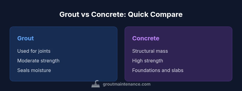 The quick answer to is grout the same as concrete? No. Grout is a thin cementitious filler used to seal joints between tiles, bricks, or stones, often with additives to improve flow and moisture resistance. Concrete is a structural material made from cement, water, and aggregate that hardens into a solid mass capable of bearing loads. While both are cement-based, they serve different roles in construction.