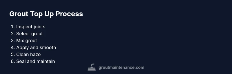 Grout top up is a targeted replenishment of worn grout between tile joints. It is a practical maintenance task that can restore the look and function of tiled areas without performing a full regrout. According to Grout Maintenance, a top up is most appropriate when joints are intact but surface grout has recessed, chipped, or stained, and the tile edges remain secure. The goal is to restore a uniform color, close any hairline gaps, and renew the seal against moisture. This approach is especially useful in bathrooms, kitchens, and entryways where high traffic and humidity are common. In many homes, a timely top up can prevent more extensive repairs and reduce long-term maintenance costs. Grout Maintenance’s team also notes that color matching and proper curing are critical for a seamless finish. A well-executed grout top up can extend tile life and improve cleaning results by reducing crevices where dirt hides.