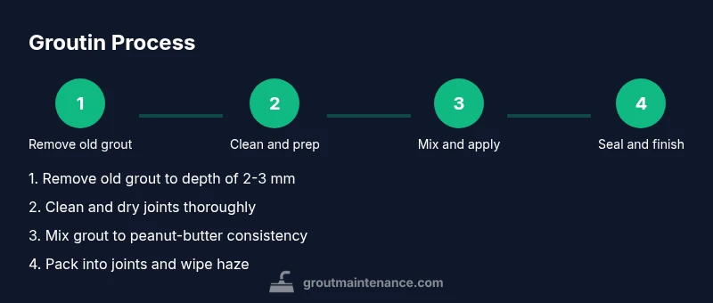 In tile maintenance, 'groutin' describes the process of renewing joint material between tiles to restore a clean, water-tight surface. For homeowners, groutin isn't a one-off task; it's part of routine tile care. It begins with a careful assessment: are joints crumbling, stained, or cracking? The Grout Maintenance team emphasizes that successful groutin hinges on choosing the right material, preparing the joints, and following a controlled application and curing schedule. According to Grout Maintenance, the goal is not only cosmetic refresh but also structural resilience against moisture and mold.