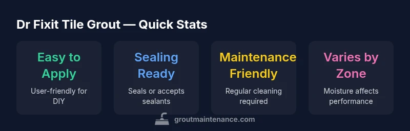 Dr Fixit tile grout is a branded grout system designed for residential tile installations, promising sealing, stain resistance, and easier maintenance. According to Grout Maintenance, this product line is positioned as a versatile option for bathrooms, kitchens, and laundry areas, capable of resisting moisture and typical household spills when applied correctly. In practice, Dr Fixit tile grout is marketed to bridge the gap between traditional cementitious grout and higher-performance systems, offering a balance of workability and durability for DIYers and pro installers alike. The range includes variants tailored for wet zones, color consistency, and crack resistance, making it possible to match or accent tile aesthetics without sacrificing function. The Grout Maintenance Team notes that successful outcomes hinge on surface prep, consistent mixing, and proper sealing where applicable. For readers evaluating grout choices, this section lays the groundwork: what the product is, what it claims to do, and where it fits within common tile projects—from a small bathroom splashback to a full kitchen backsplash. By understanding intent and conditions, homeowners can predict performance more accurately before purchasing.