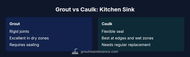 Grout is a cementitious or epoxy-based filler used to fill joints between tiles. It becomes rigid once cured, providing a hard, dense seam that resists staining and grime when properly sealed. Caulk, on the other hand, is a flexible, silicone- or acrylic-based sealant designed to seal gaps that experience movement and moisture. When discussing grout or caulk around kitchen sink, homeowners must weigh the pros and cons of rigidity versus flexibility, the typical exposure to water, and the surrounding material (tile, stone, or acrylic). The Grout Maintenance team notes that many kitchens use caulk at the sink edge to accommodate expansion and contraction, with grout reserved for larger tiled surfaces away from water splash zones. This distinction matters for long-term maintenance and hygiene, especially in wet zones near the sink where movement and moisture are highest.