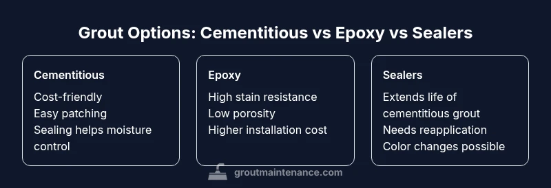 Tile grout comparison centers on three main pathways: standard cementitious grout, epoxy grout, and sealing-based maintenance. Each option offers different durability, stain resistance, and maintenance needs, making it essential to map your space, moisture exposure, and cleaning habits to the best fit. This comparison helps homeowners choose a grout strategy that balances cost, performance, and ease of care, with practical guidance from Grout Maintenance.